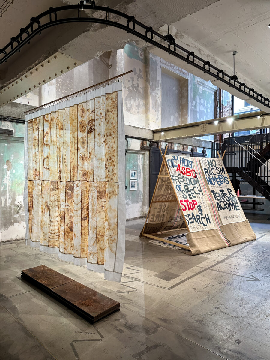 ‘This Is A Protest’ is a new installation, created in the shape of a homeless persons tent. With headline grabbing soundbites of “invasion”, “serious disruption” and “hate marches”, crafting common culture and motivating action, legislation was sanctioned to prevent and arrest, obstructions which caused “more than minor hindrance to day-to-day activities”. We must Protect our Right to Peaceful Protest.